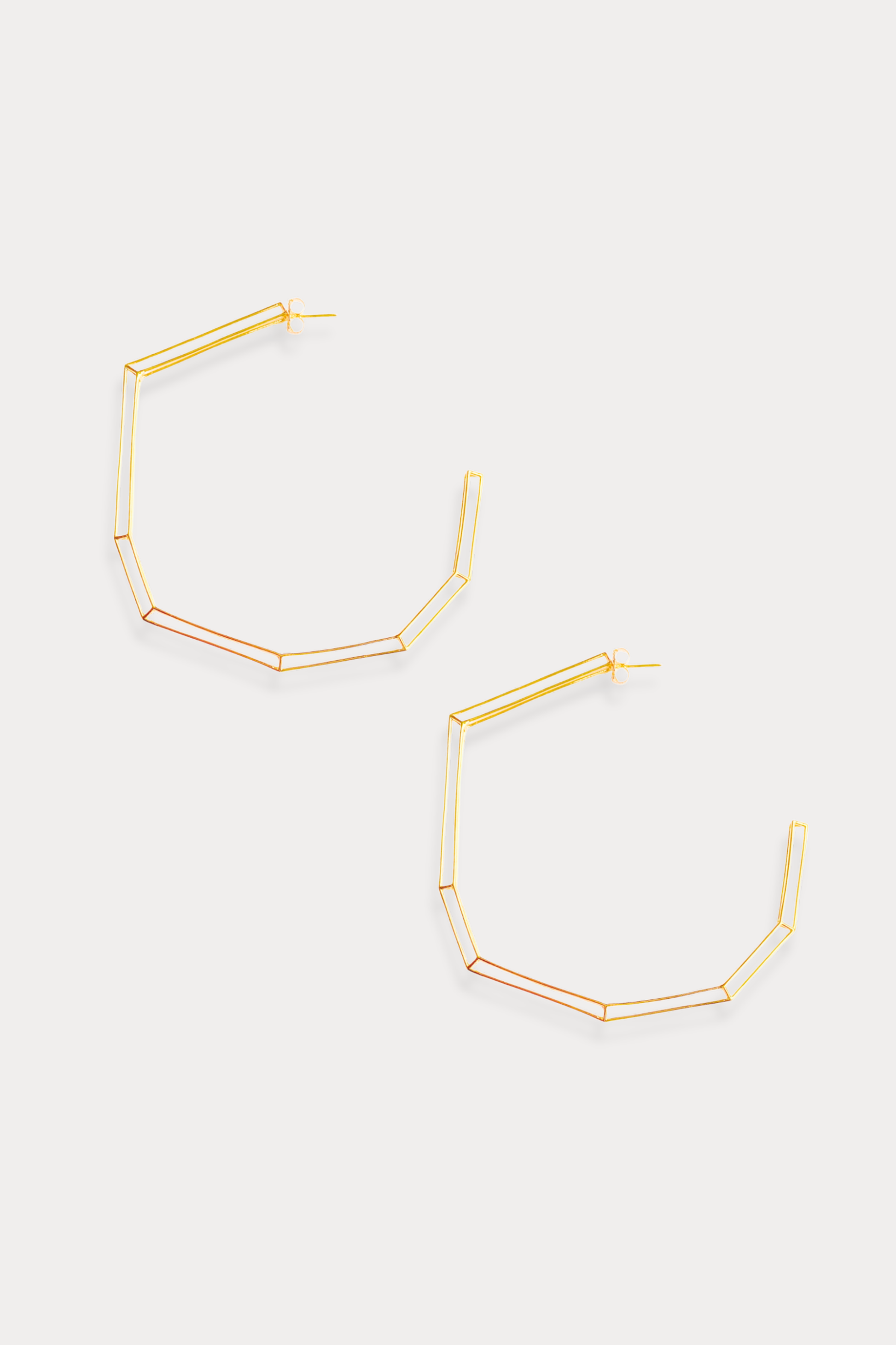 Plated with 18K gold, these earrings are not only a fashion statement but a symbol of strength and resilience. Designed with a sleek and modern twist on the classic hoop earring, the Strength Hoops feature a unique and edgy shape that adds an extra layer of dimension and personality to your look.