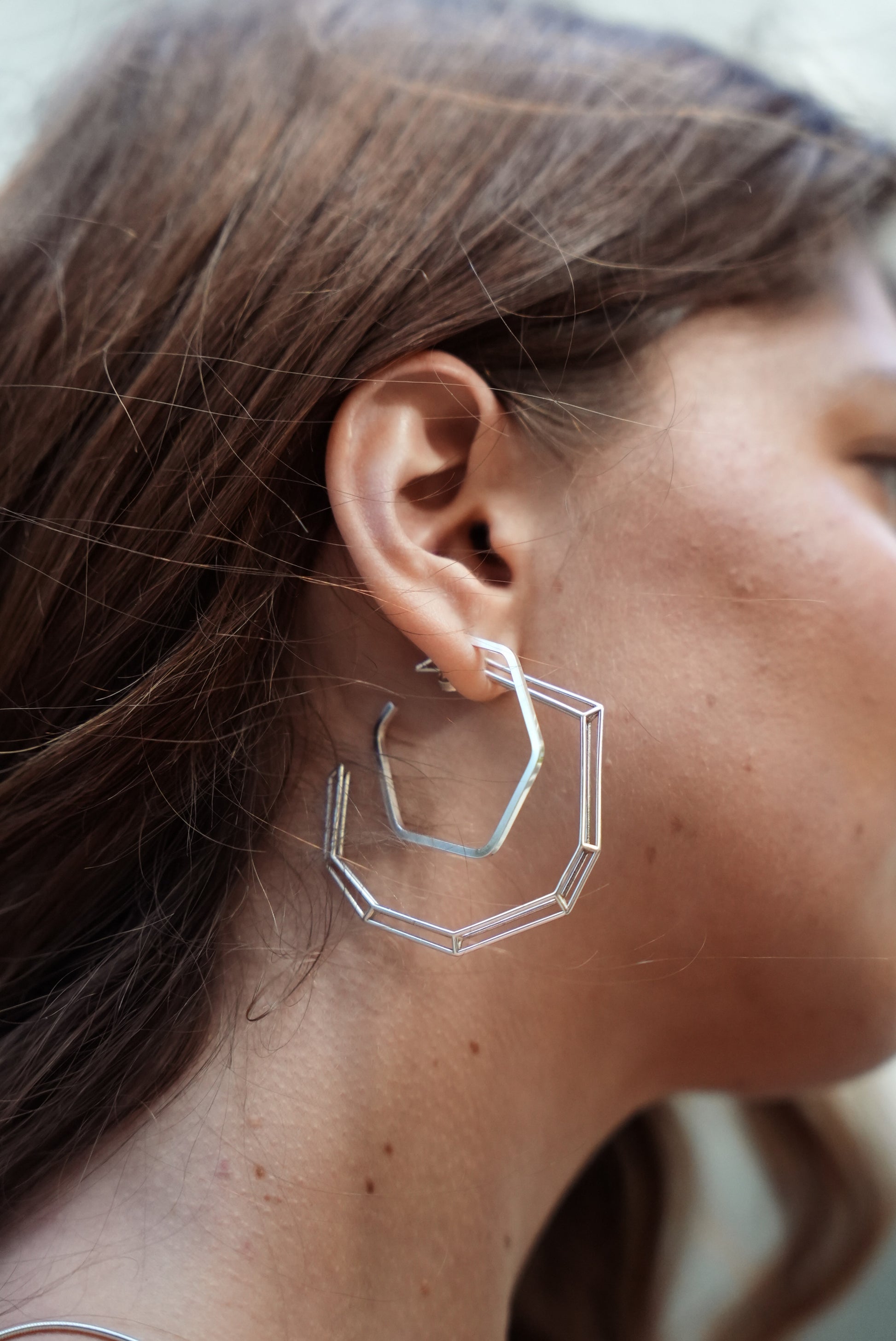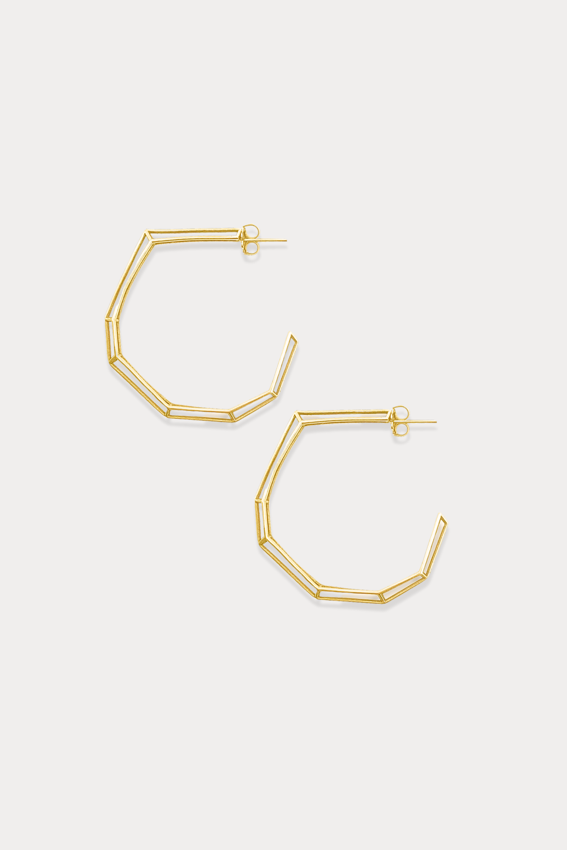 Plated with 18K gold, these earrings are not only a fashion statement but a symbol of strength and resilience. Designed with a sleek and modern twist on the classic hoop earring, the Strength Hoops feature a unique and edgy shape that adds an extra layer of dimension and personality to your look.