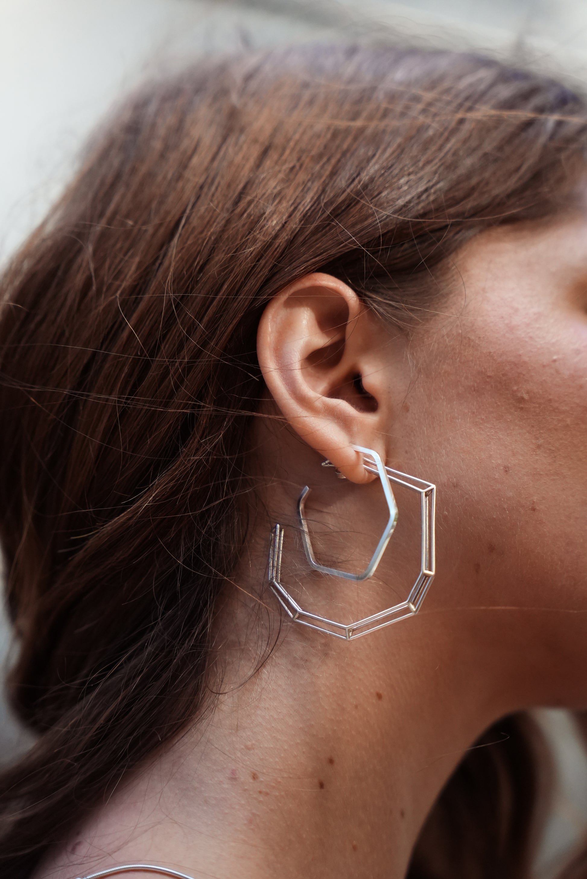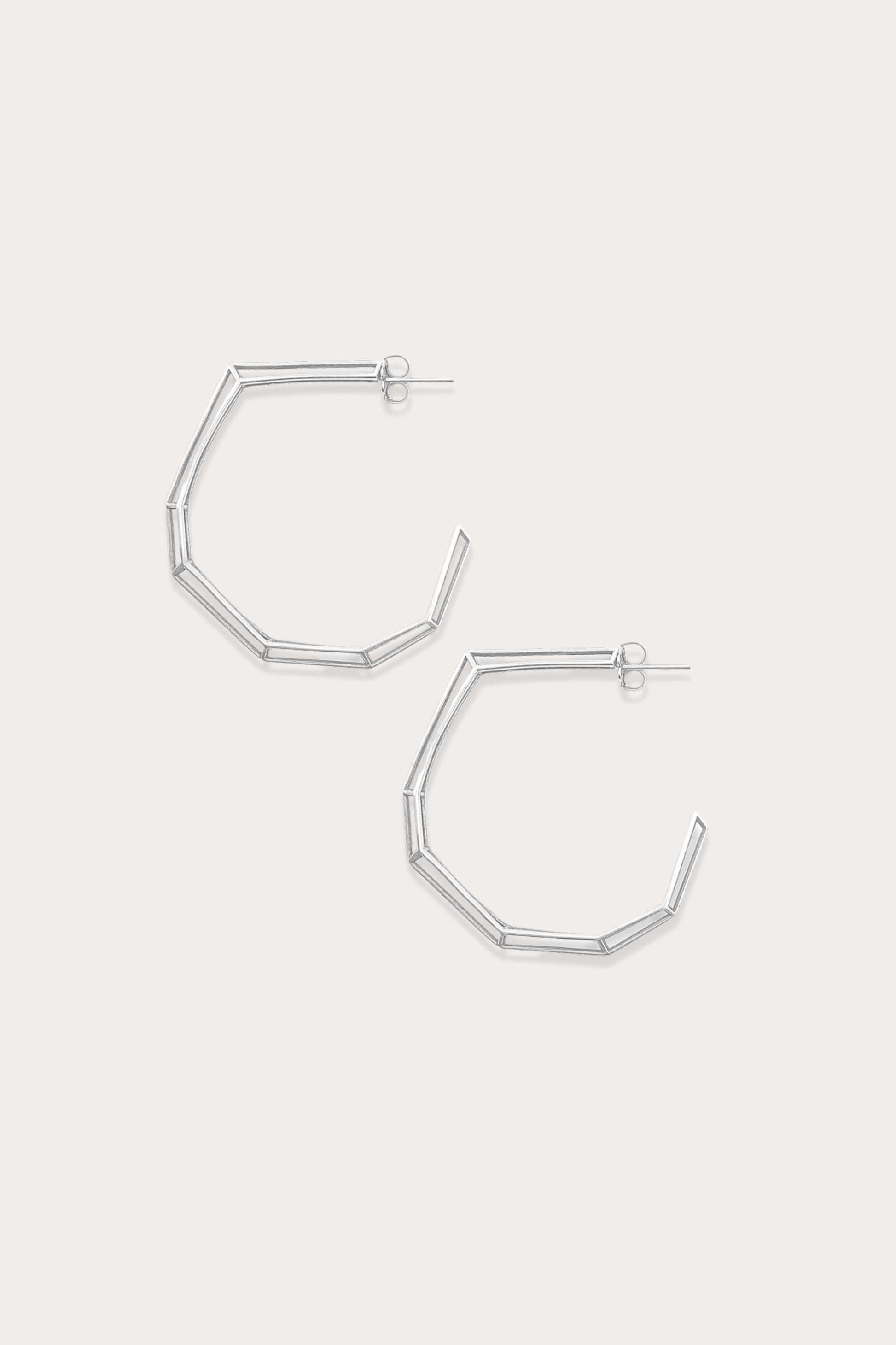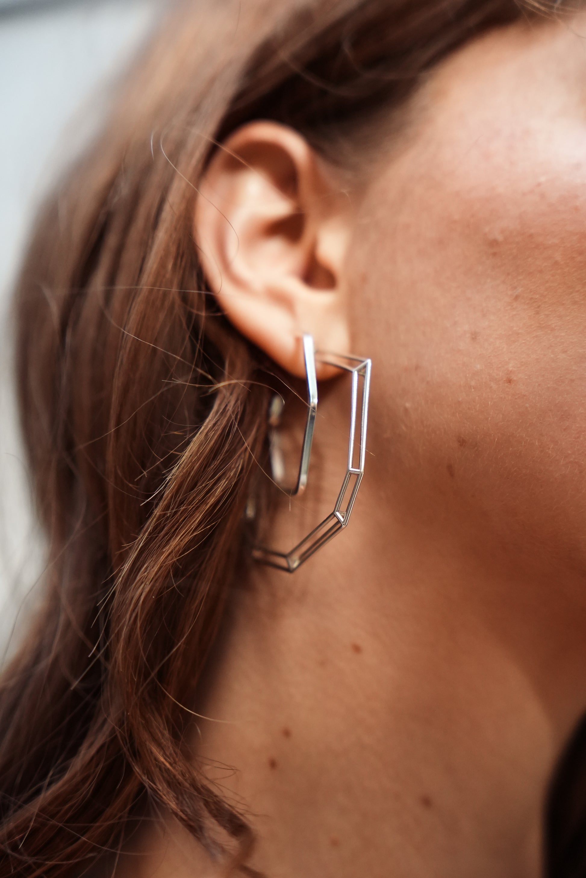 Crafted from high-quality sterling silver, these earrings are not only a fashion statement but a symbol of strength and resilience. Designed with a sleek and modern twist on the classic hoop earring, the Strength Hoops feature a unique and edgy shape that adds an extra layer of dimension and personality to your look.