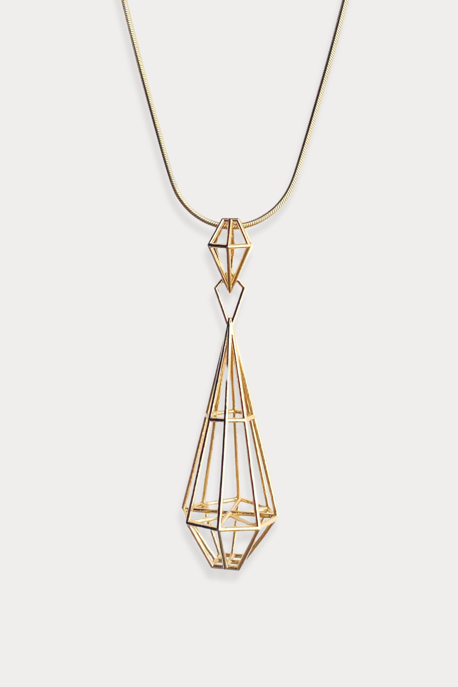 18K Gold Plated Brass Crystal Inspired Wire Frame Pendant Necklace