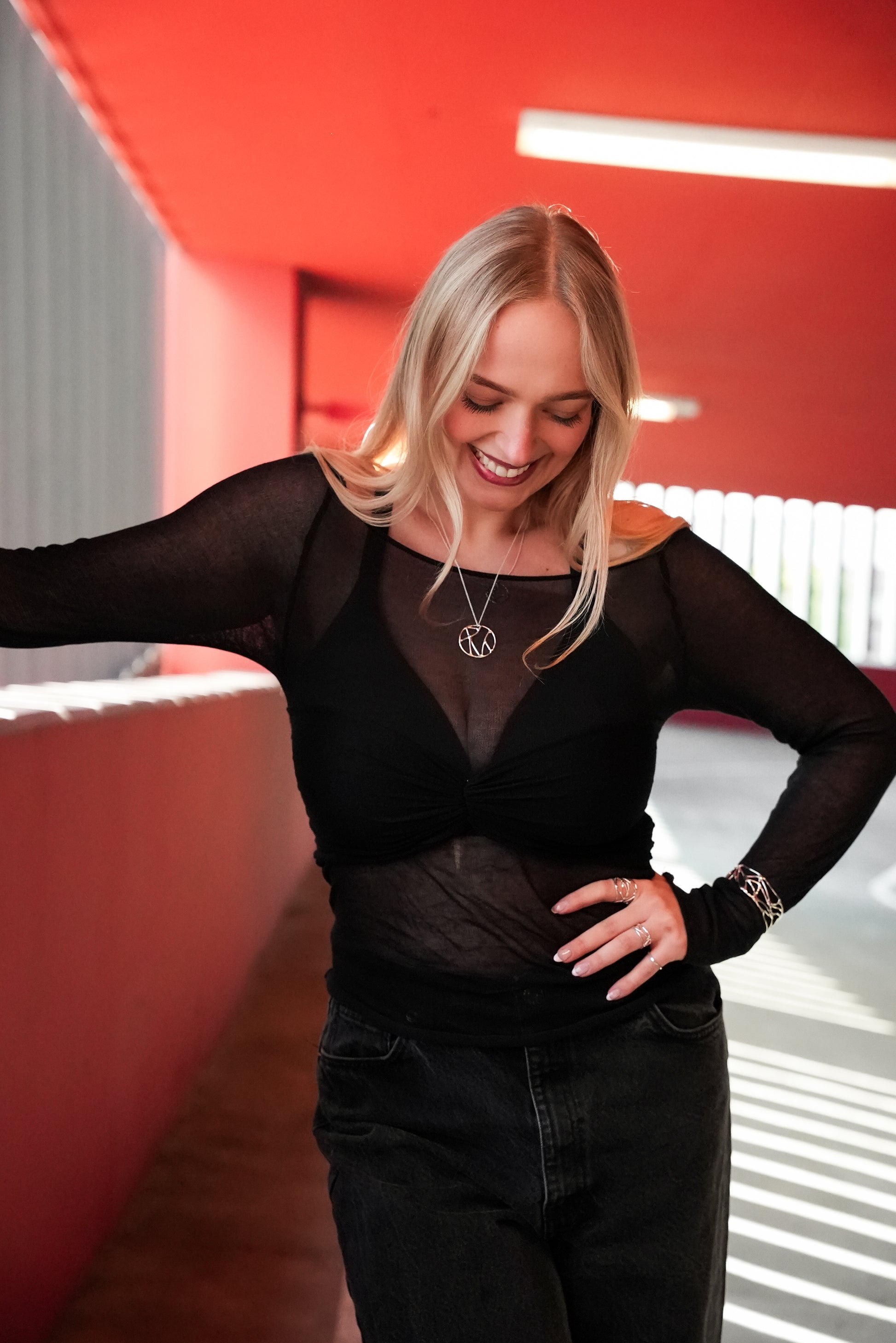 Large Courage Pendant Necklace in Gold Plated Brass