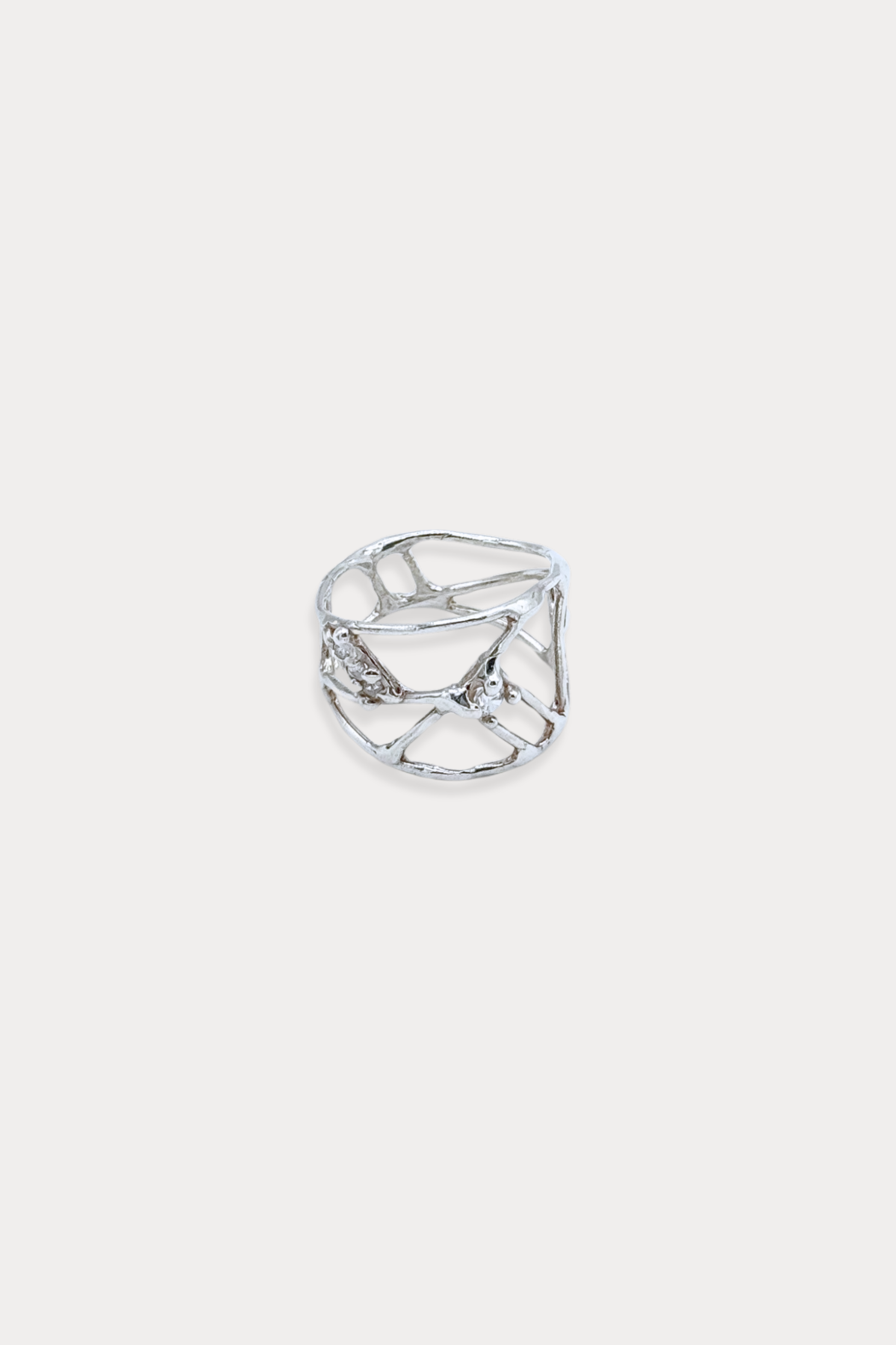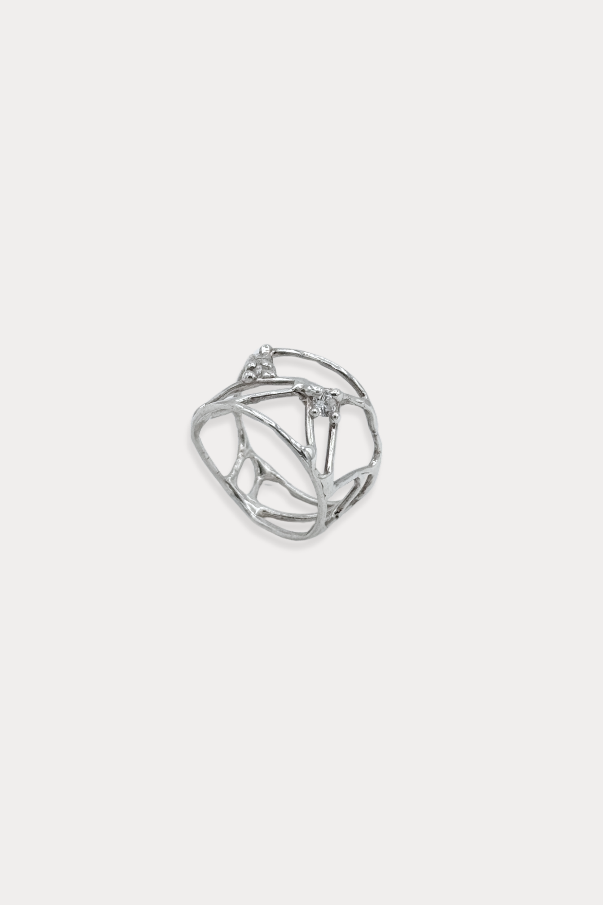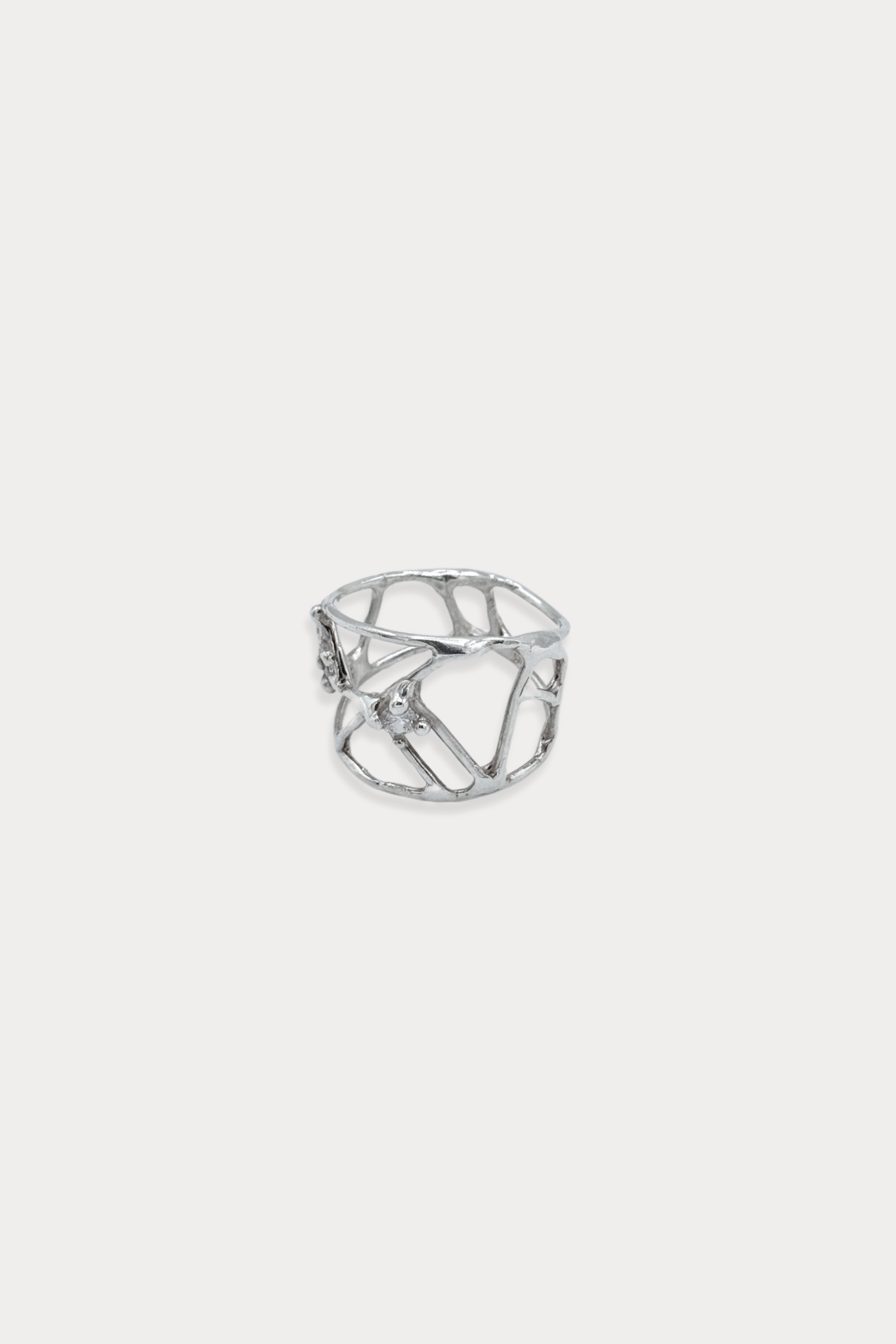 Wide Organic Courage Ring Band with CZ's in Sterling Silver
